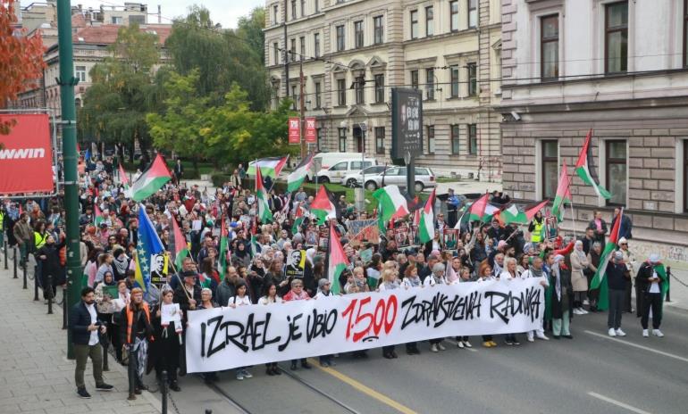 Otprilike 6.000 građana učestvovalo je na današnjim protestima u Sarajevu pod nazivom “Bosna i Hercegovina za slobodnu Palestinu” – potvrđeno je iz Ministarstva unutrašnjih poslova Kantona Sarajevo.