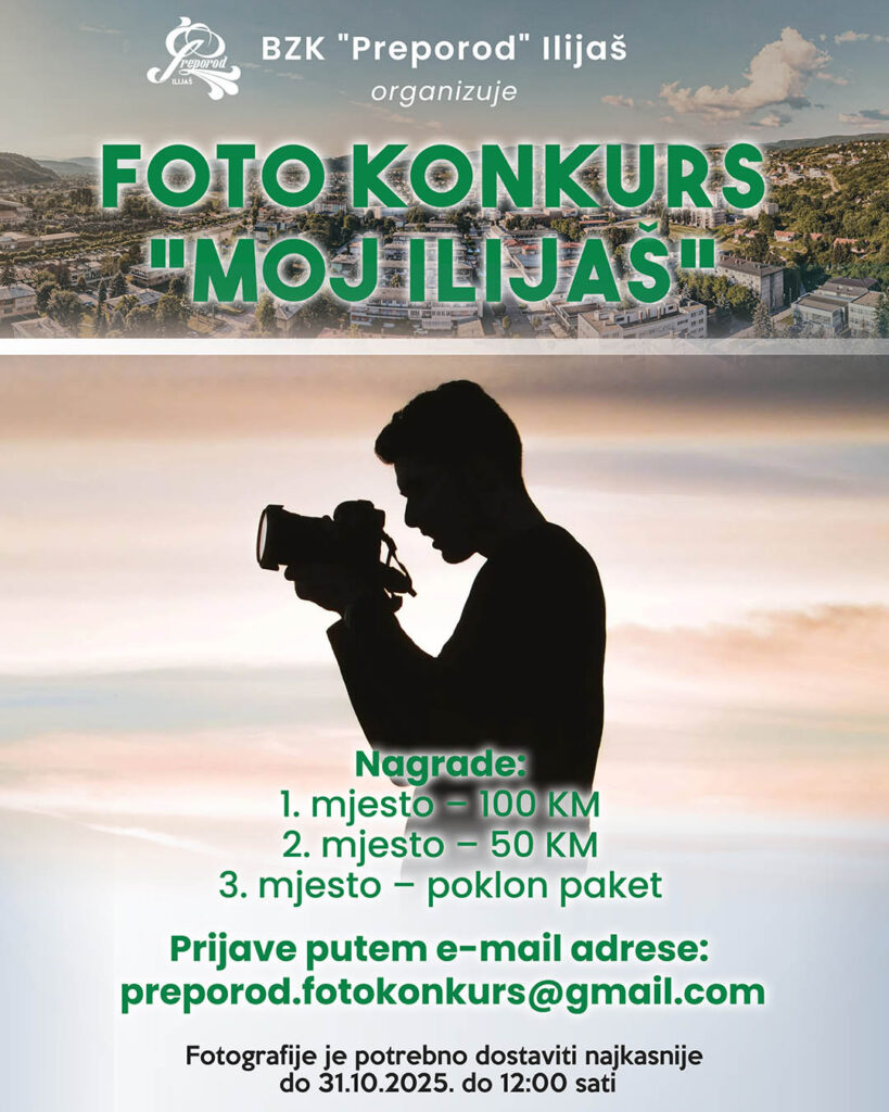 U sklopu manifestacije “Dani Preporoda”, Bošnjačka zajednica kulture “Preporod” Ilijaš raspisuje nagradni foto konkurs pod nazivom “Moj Ilijaš”, koji će trajati u periodu od 13. do 31. oktobra 2025. godine.