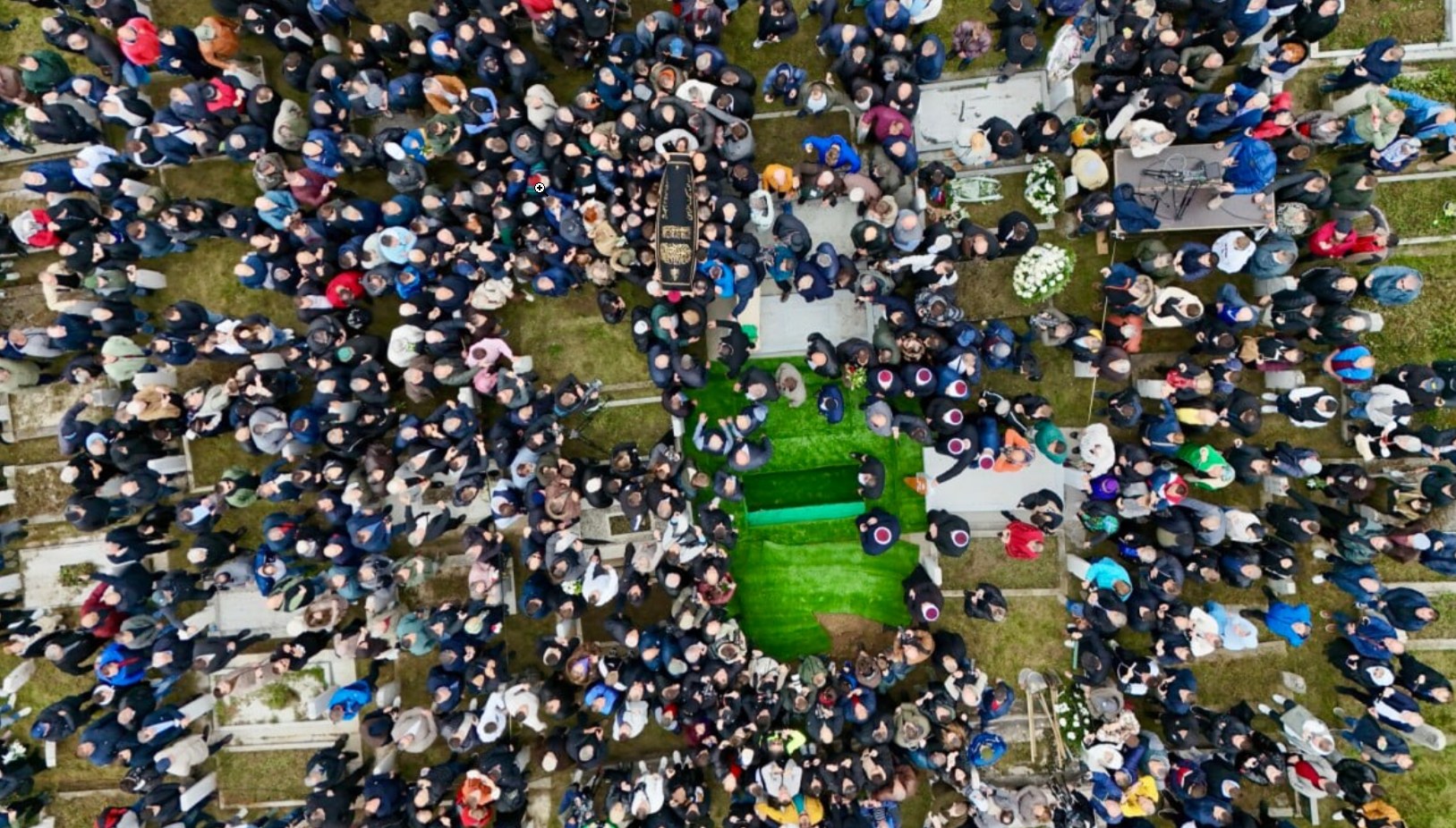 Nakon održane komemoracije u Narodnom pozorištu u Sarajevu i dženaze u haremu Gazi Husrev-begove džamije, rijeka ljudi je stigla na gradsko groblje Bare kako bi ispratili legendarnog Halida Bešlića.
