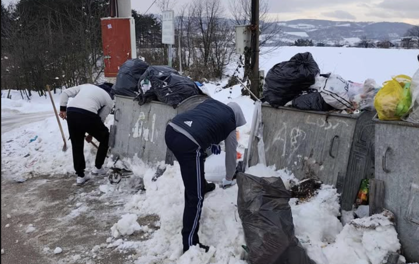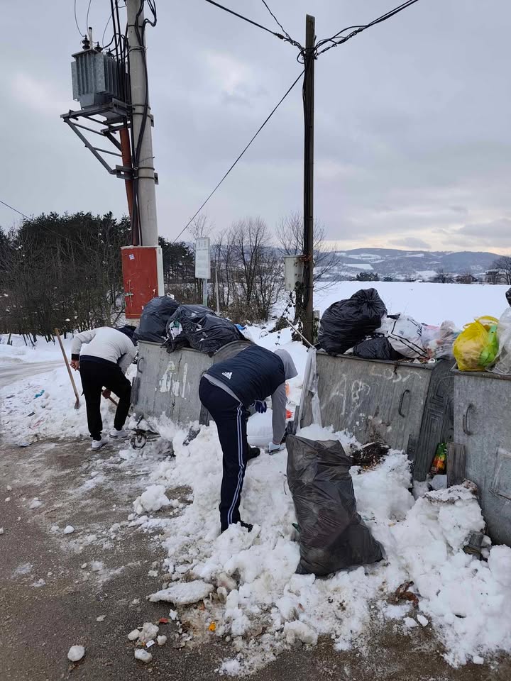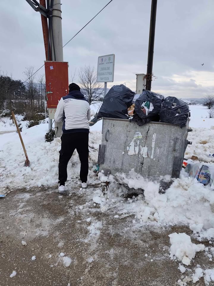 Primjer vrijednog i odgovornog ponašanja danas dolazi iz naselja Sovrle, gdje su tri brata – Alen, Aldin i Emelin Salihović – vlastitom inicijativom očistili led oko kontejnera i pokupili razbacano smeće.