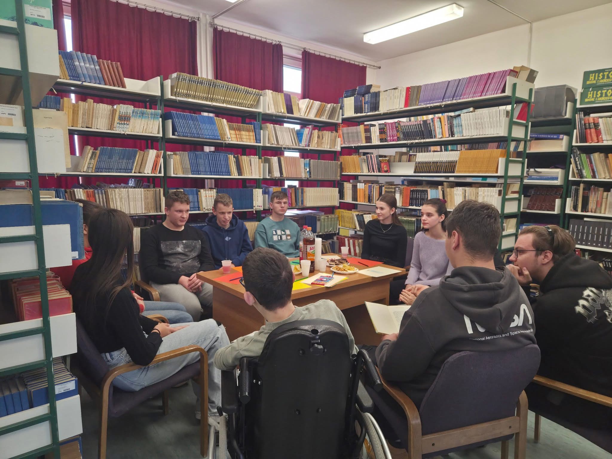 Biblioteka je na kratko postala mjesto susreta, razgovora i kreativnog druženja. Učenici su zajedno čitali, razmjenjivali mišljenja, pjevali i učestvovali u zanimljivim igrama, stvarajući ugodnu i opuštenu atmosferu uoči praznika.
