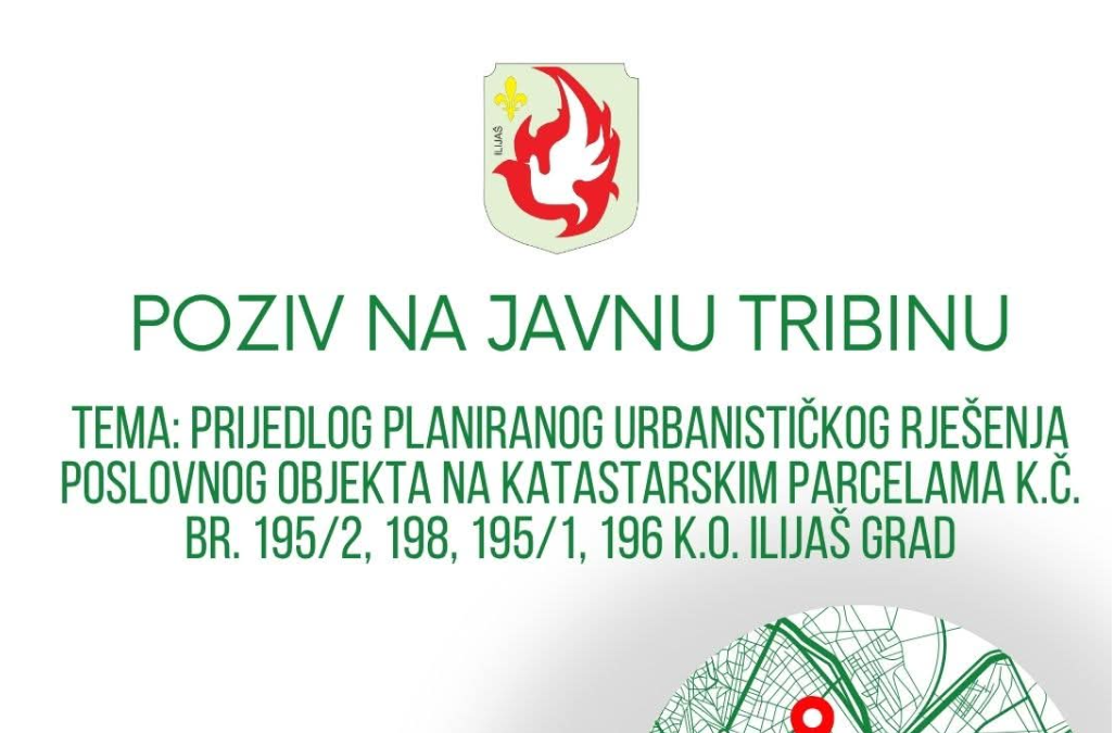 U skladu sa članom 7. Odluke o pristupanju izradi Izmjene i dopune Regulacionog plana “BANOVAC” izgradnja stambeno-poslovnog kompleksa na k.č. br. 195/2, 198, 195/1, 196 K.O. Ilijaš grad u Ilijašu (Službene novine Kantona Sarajevo broj 28/24) – lokalitet preko puta poslovnice Vodostana i Reciklažnog dvorišta, organizuje se Javna tribina na temu Prijedloga planiranog urbanističkog rješenja poslovnog objekta na navedenim katastarskim parcelama.